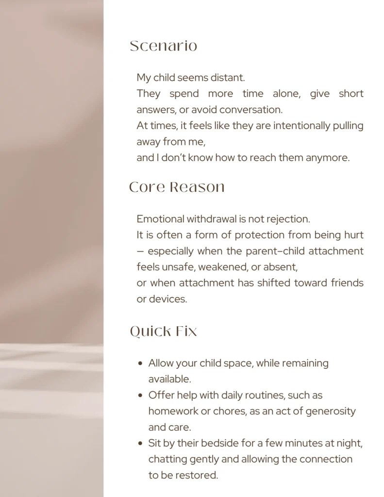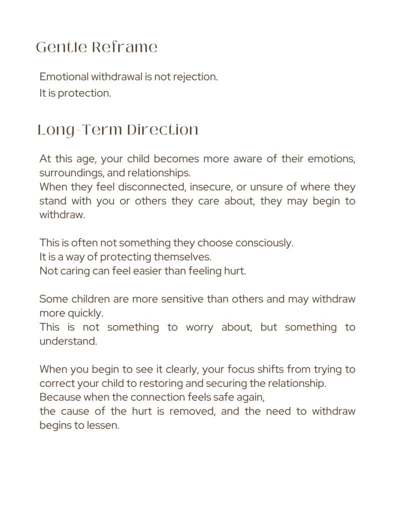 At this age, children begin to change in ways that are not always easy to understand. This guide helps you look beyond behaviour and recognise what is really taking place beneath the surface. With clear insight into the root causes, you are able to respond with calm and direction — in a way that brings ease in the moment, while gently working toward lasting change.